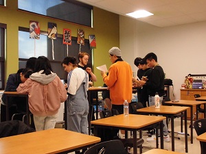 午後からの日本語クラスはビンゴを使った学習でした。現地の生徒よりも本校の生徒のほうが積極性があり、自ら話しかけに行くということができていたので感心しました。その後は行内スカベンジャーハント(月曜の記事を参照)を楽しんでいました。