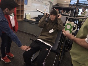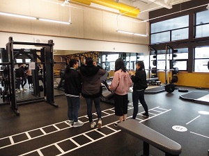 学校のジム、体育館とは別に野球のできる程の広さがあるホール、保健室の見学をしました。