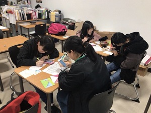 生徒達はホストファミリー、スカベンジャーハントとPSU見学でペアになった現地の生徒宛に一生懸命お礼のお手紙を書きました。