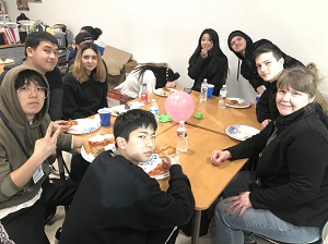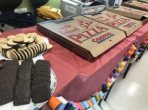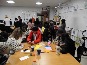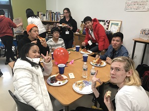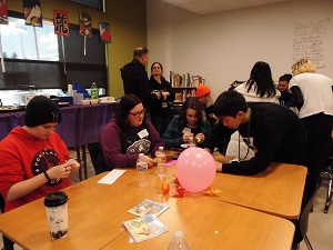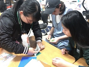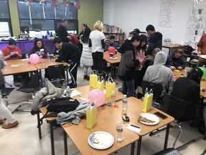 昼食後は1時間日本語クラスのアシスタントを行いました。その後farewell partyの準備でお世話になったホストファミリー、バディへのThank you cardの作成、そして飾り付けを行いました。partyは4時から始まりたくさんのホスト家族、日本語授業を履修している生徒が集まり盛り上がっていました。短時間で本校の生徒とルーズベルト高校の生徒が仲良くなったのかを表しているのではないでしょうか。若いとはすばらしいことだと感じました。partyはほかにもESLクラスの終了証を先生から受け取り、本校の生徒が書道、折り紙を披露するなど日本の文化を紹介しました。特に書道はこちらの方にとってはあまり身近なものではないのでたくさんの人が興味を持っておられました。