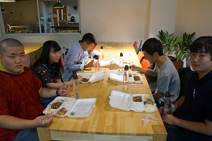 語学学校内の食堂で夕食を食べた後に近くのホテルへ行きました。