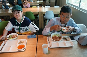 朝8時30分にホテルから学校に移動し、食堂で朝食を食べました。