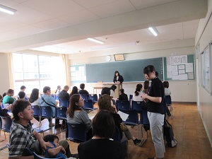 体験授業(英会話と理科実験)。英会話ではネイティブの教員とのやり取り、理科実験ではオームの法則をじかにみれました。