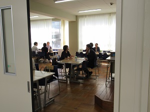 授業の後は校内見学と食堂でのランチ体験。在校生が案内します。