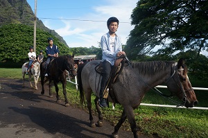GDE組はサンドウィッチとバナナの朝食を食べたあと、クアロア牧場にて、「乗馬ツアー、バギーツアー、映画ロケ地ツアー、ジープツアー、クルーズツアー、ガーデンツアー」から生徒が選択した2つのツアーを行いました。その後、ビュッフェスタイルの昼食を食べました。