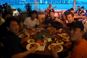 夕方からはホテルで合流した後、パシフィックスターディナークルーズにてサンセットを見て、ローストビーフ含む豪華ディナーとハワイアンショーを楽しみました。