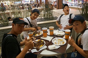 夕方からは、全クラス共通でハワイ最大のショッピングモールに行きました。約350のショップとレストランが出店しているショッピングモールで夕食を兼ねてのフリータイムがありました。思う存分買い物を楽しんで、最後に素敵な思い出を作りました。