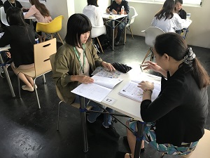 授業も2日目であり、時間毎のレッスン場への移動にも慣れてきたようです。レッスン全体は個別指導と、数人でのグループ授業、及び全員でのライティングやエッセイ作成で成り立ちます。さまざまな場面があって、飽きさせない工夫だと思えますが、生徒によっては得手、不得手があるようで、グループの方が余裕が持てるという生徒もいる反面、個人レッスンをもっとたくさん受けたいと希望する人もいます。