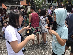 その後セブンスピリットに戻り、通っている子どもたちと昼食をとりました。生徒たちが食べたがっていたJollibeeのセットが提供され、子どもたちと食事を楽しみました。Jollibeeはフィリピンで最も有名なファーストフードです。食べ終わった生徒で、日本の手遊びを教えて子どもたちと一緒に遊んでいる生徒も見られ、英語でコミュニケーションをとることに慣れてきているように思いました。