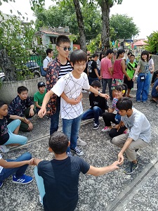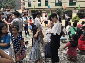 昼食後は、セブンスピリットの目の前にあるヘリテージ・オブ・セブ・モニュメントのそばで、子どもたちと様々なレクリエーションを行い交流しました。ジェスチャーゲームやグループで協力するゲームを通して盛んにコミュニケーションをとることができました。年齢が近いこともあるのか、すっかり仲良くなり、楽しい時間を過ごすことができたと思います。