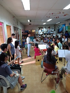 最後は、セブンスピリットの子どもたちによるオーケストラを鑑賞しました。生徒たちも馴染みのある曲目がほとんどで、演奏もとても上手なものでした。特に子どもたちが、「ハナミズキ」を日本語で歌った時には涙を流す生徒もいました。後半では指揮者体験をさせていただき、より距離が縮まったように感じました。11月4日に大阪で演奏会を開催するとのことで、皆是非鑑賞したいと考えているようです。