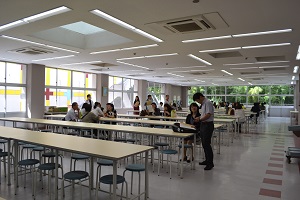 食堂での「おしゃべりカフェ」。茶道室と同じく、在校生からなんでも聞くことができます。
