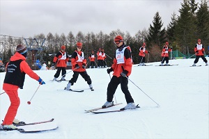 時折、青空も出る天候です。午前中は、開校式を行った後、スキーの基本を教えてもらいましたが、午後からは初心者もほとんどリフトに乗り、斜面を滑って降りてきました。それぞれのレベルに合わせてスキーを楽しむことができました。
