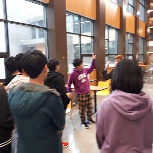 その後、交代でツアーコンダクター役になり、校内を案内してまわり色々な単語を使う機会となりました。