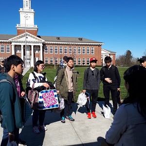 その後、さよならパーティーをする予定だったレストランも閉店になりましたので、学校前の芝生広場にて、お世話になった先生にお礼のカードを渡し、別れを惜しんでいました。