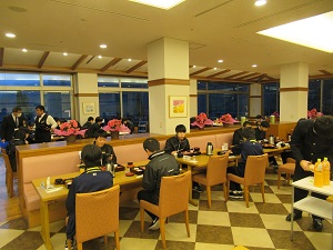 これから昼食をとり、目的地別にバスに分乗して大阪・和歌山に向かいます。生徒たちは来年には3年生となり、受験も本番を迎えます。年末年始はこの合宿で学んだことや、身に付けた学習習慣を活かして、ぜひ1年後には希望進路を実現して欲しいと思います。