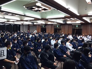 夜は1年生の生徒会執行部の司会のもと、レクリエーションの時間を過ごしました。ダンス部の発表、○Xクイズ、漫才、筋肉パフォーマンスなど多彩な内容で、生徒たちはスキーの疲れにもかかわらず盛り上がっていました。