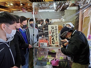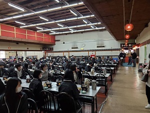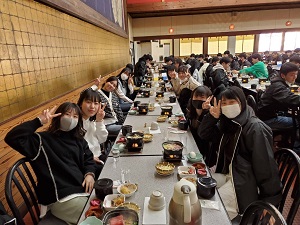 朝9時に白樺リゾート池の平ホテルへ向けて出発しました。休憩をはさみながら順調に進んでいき、昼食は岐阜県の恵那峡山菜園でとりました。感染症対策に留意して、生徒たちは行儀よく食事をとることができていました。