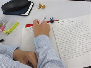 中盤・後半では長文読解問題に取り組みました。連続する文章の規則性に着目して読解を進める方法や、空所補充問題・下線部問題など、こちらも出題内容をパターンごとに分析して解説が進められていきました。姜先生からは、この時期は問題に正解したかどうかに一喜一憂するのではなく、どの様に考えて英文を読み解くかが大切であり、また問題の特徴に応じた考え方が必要なことなど、様々な具体的アドバイスを頂きました。