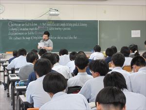 終盤はさらに難度を上げて、国公立大学の二次試験などでも出題される英問英答問題を題材として、正解へのアプローチや誤答のパターンなど実践的な内容で解説を加えていただきました。生徒たちは時折頭を抱えながらも最後まで真剣に問題に取り組み、姜先生の解説をメモを取りながら熱心に受講していました。