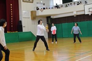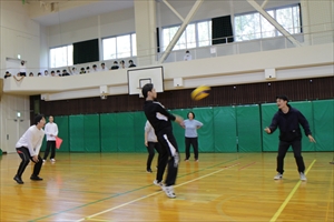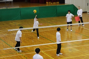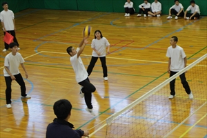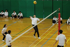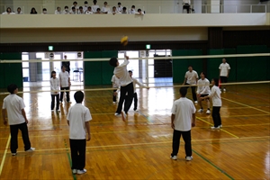当日の生徒たちの動きが良く、順調に試合を進めることが出来たため、最後にエキシビションマッチとして教員チーム対優勝したB組の代表チームで試合を行いました。