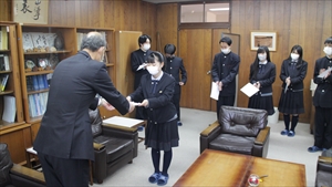学校行事 2023.04.21 令和5年度前期 生徒会執行部選挙&認証式 4/18(火)、前期生徒会執行部の選挙が行われ、新しい7人の執行部員が選ばれました。 4/20(木)には、新しい執行部の認証式が行われ、校長より委嘱状が手渡されました。 「生徒会一同全力でより良い学校にしていきます!!」との抱負を語ってくれましたので、これからの各種行事での活躍が期待されます。 NEWS一覧に戻る カテゴリ一 校長メッセージ重要なお知らせお知らせ学校行事部活動事務室より海外研修入試関連情報