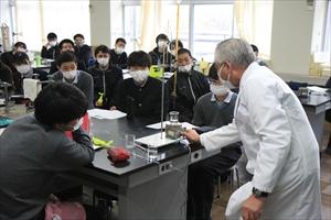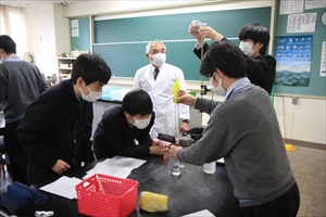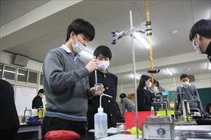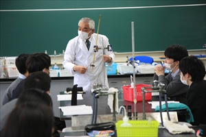 コロナ禍で化学実験を行っていませんでしたが、受験生となる新3学年理系生徒対象に、2学年で習った内容の確認として実験を2つ行いました。