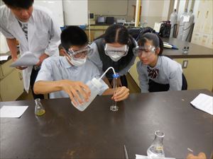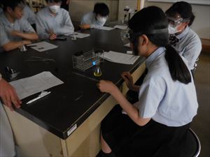 各自がゴーグルをつけ、実験を開始しました。実験をあまり経験していないので、緊張している様でした。