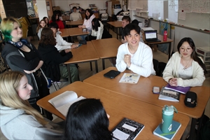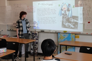 午後の後半の授業では、日本での研修の経験や、自分で調べた日本の文化に関するプレゼンテーションを何人かのアメリカ人生徒が行ったり、アメリカ人生徒が日本人生徒に大阪のことなどを質問する時間もありました。