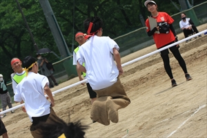 「借り物・借り人競争」では、先生・生徒が次々と借りていかれます。