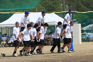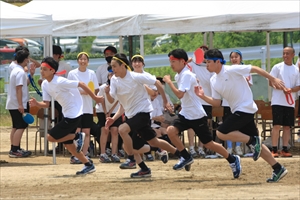 前日から当日早朝まで降り続いた雨のため、開始を30分繰り下げましたが、野球部やバレーボール部員の活躍で、無事開催にこぎつけることができました。