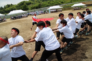 「女子棒引き」、「男子綱引き」は激しい戦い。
