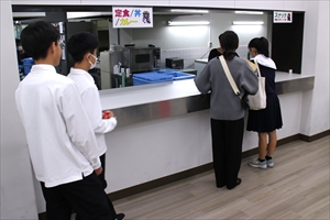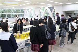 その後の分散会では、クラブ見学、食堂体験(唐揚&ポテトの試食)、入試解説講座、在校生とのおしゃべり、個別相談会などのプログラムから、参加者が好きなものを選んで、校内を自由に散策します。