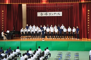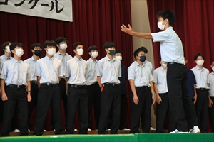 1年生は合唱コンクール、教室展示、陶芸展示などを行いました。合唱コンクールでは、クラス別に2曲(『にじいろ』『ぜんぶ』)を歌います。マスクをつけたまま行うなど、限られた環境下での練習と本番でしたが、見事なハーモニーとパフォーマンスでクラスのまとまりを表現してくれました。