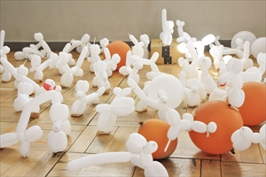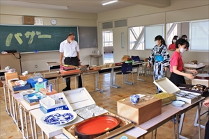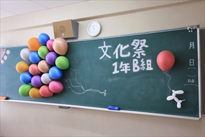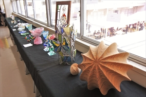 教室展示は各クラスで黒板アートやバルーンアート、オブジェや書・短歌などの展示を行い、別教室では校外学習の際に信楽で制作した陶芸作品を展示しました。