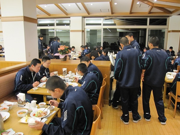 90分授業を2コマ行った後、夕食をとります。今回の合宿では最後の夕食です。長時間の授業・勉強にも慣れているため、みな元気に食べています。