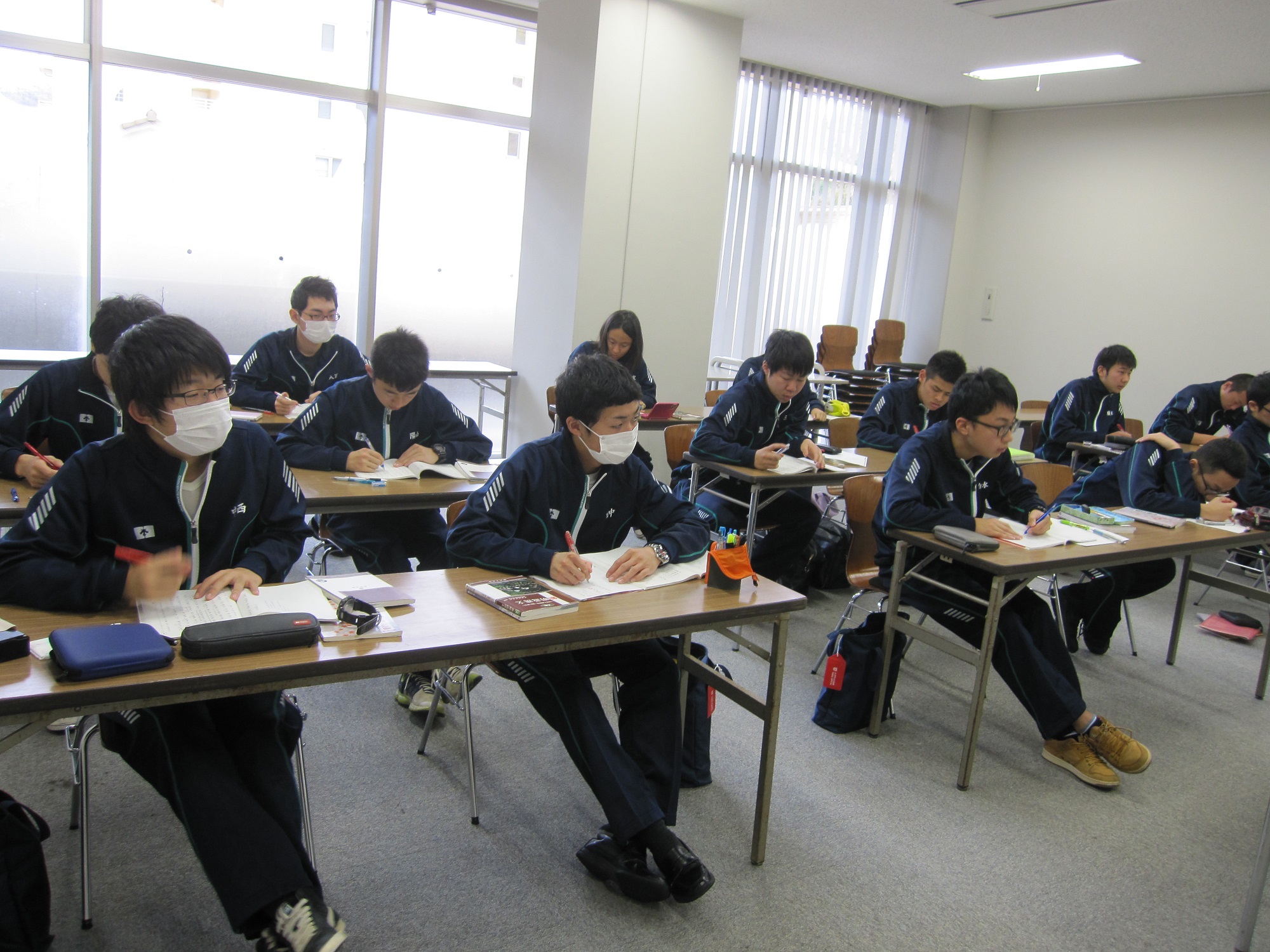 学校行事 2014.12.27 平成26年度勉強合宿(2日目午前) 平成26年度勉強合宿(2日目午前) [発信日:平成26年12月27日] 2日目が始まりました。6:30の起床・点呼のあと、朝食をとります。 朝食のあと、クラスごとのホームルームと早朝テストがあります。普段の日課とかわりません。 2日目1時間目の授業が始まりました。 NEWS一覧に戻る カテゴリ一 校長メッセージ重要なお知らせお知らせ学校行事部活動事務室より海外研修入試関連情報